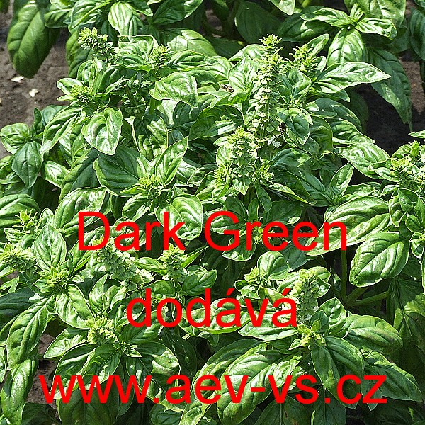 Bazalka pravá vonná (Ocimum basilicum) Dark Green je tmavě zelenolistá. Je příjemně aromatická, používáme ji i na grilování, saláty, těstoviny, pizzy.