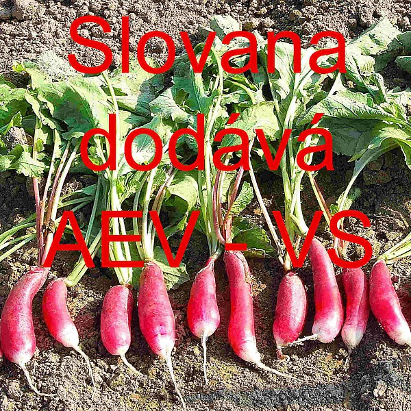 Popis: Ředkvička (Raphanus sativus var. sativus) Slovana je raná válcovitá červenobílá ředkvička vhodná pro rychlení i k jarnímu pěstování na záhonu.