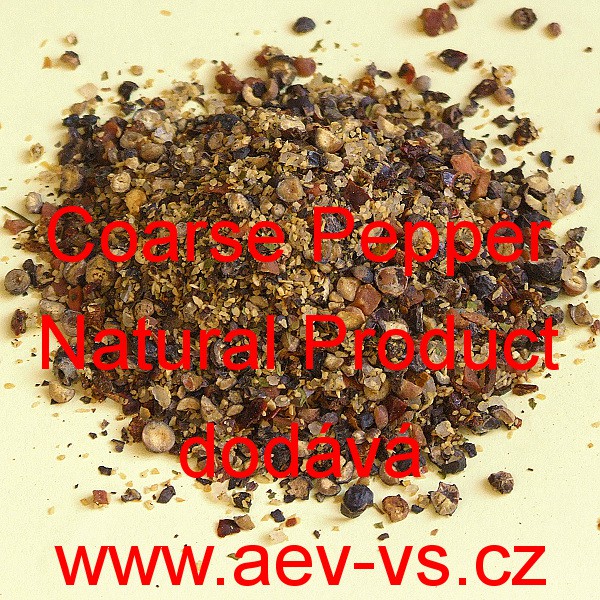 Coarse Pepper Natural Product (pepřové koření hrubé) je speciální směs přírodních koření bez přidaných alergenů, glutamátu sodného, umělých barviv, zvýrazňovačů chuti, konzervačních látek (tak zvaných Éček) či aditiv. Tato směs je vhodná i pro děti, alergiky, těhotné a kojící ženy. Použít ji můžeme třeba při přípravě steaků.