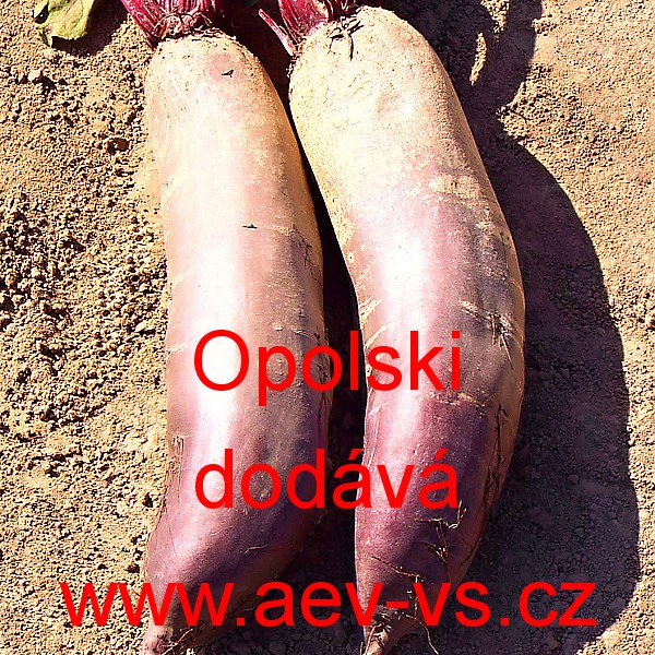 Řepa červená salátová (Beta vulgaris var. esculenta) Opolski je poloraná podlouhlá válcovitá červená salátová řepa. Odolává chorobám a vybíhání do květu.