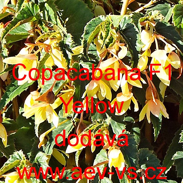 Kysala bolivijská převislá (Begonia boliviensis) Copacabana F1 Yellow je žlutá jednoletá květina. Na záhonu vytváří asi 35 centimetrů vysoké košaté bohatě kvetoucí rostliny. V truhlíku, okrasném korytu a v závěsné nádobě hluboce přepadává přes okraje. Květopády nádherných jednoduchých "třapatých" zvonkům podobných květů určitě nepřehlédneme.