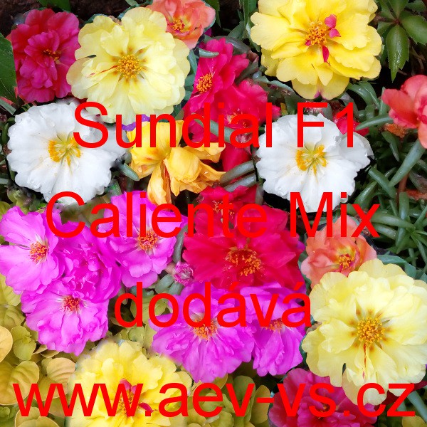 Šrucha velkokvětá (Portulaca grandiflora) Sundial F1 Caliente Mix je směs nízkých hybridních velkokvětých plnokvětých jednoletých květin.