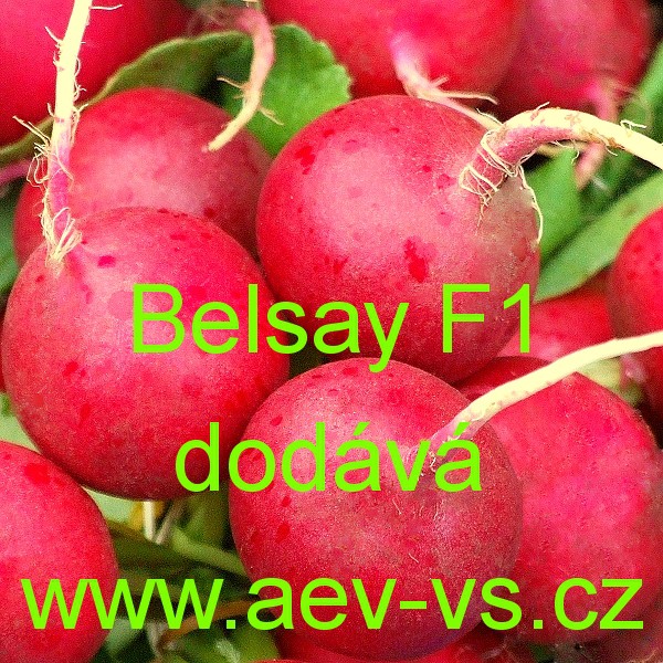 Ředkvička (Raphanus sativus var. sativus) Belsay F1 je poloraná zářivě červená kulovitá letní až podzimní hybridní ředkvička na záhon.