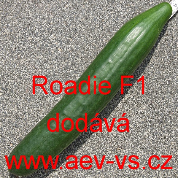 Okurka setá salátová (Cucumis sativus L.) Roadie F1 je velmi raná sytě zelená asi 32-36 centimetrů dlouhá velice výnosná hybridní partenokarpická salátová okurka setá "hadovka" do skleníku.