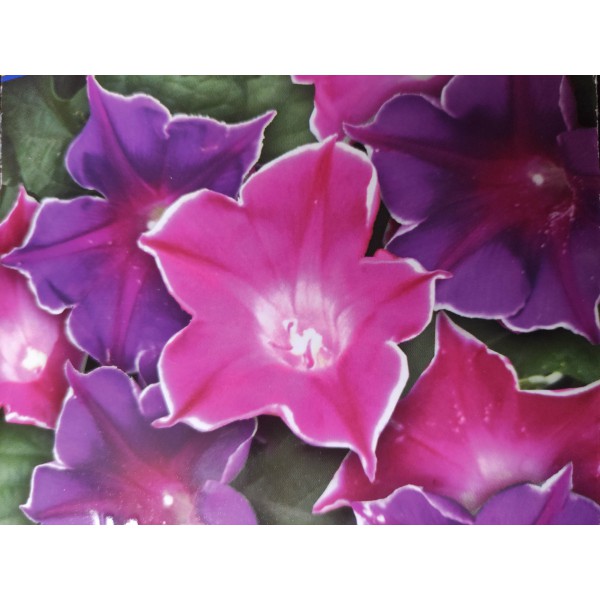 Popis: Povíjnice nachová (Ipomoea purpurea) Picotee Mix je asi 200 až 300 centimetů vysoká směs pnoucích růžových a modrofialových (v odstínech) jednoletých květin s hvězdou v květu a bílým okrajem okvětních plátků. Hodí se na záhon, do truhlíku, květináče a okrasného koryta.