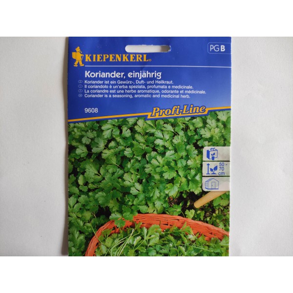 Popis: Koriandr setý (Coriandrum sativum) je 50 - 70 centimetrů vysoká jednoletka. Je výborný na omáčky, dušená masa, orientální jídla a do salátů. V lidovém léčitelství používáme převážně plody. Působí proti nadýmání, při pocitu plnosti žaludku, proti žaludečním křečím a nechutenství.Drcená semena jsou vhodná jako perníkové koření nebo na pečení chleba, protože jsou obzvláště zažívací. Čerstvé listy používejte pouze v malém množství na masový vývar. Konzervace: suchá semena.