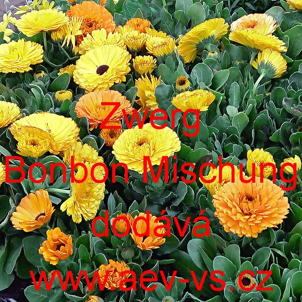 Popis: Měsíček lékařský (Calendula officinalis) Zwerg Bonbon Mischung je asi 25 až 30 centimetrů vysoká plnokvětá směs jednoletých květin. Pěstovat ho můžeme na záhonu, v truhlíku, květináči a okrasném korytu.