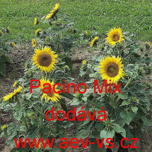 Popis: Slunečnice roční (Helianthus annuus) Pacino Mix je asi 40 centimetrů vysoká směs žlutooranžových jednoletých květin. Vykvétá více květy na stonku. Hodí se na záhon, do většího truhlíku, květináče a okrasného koryta.