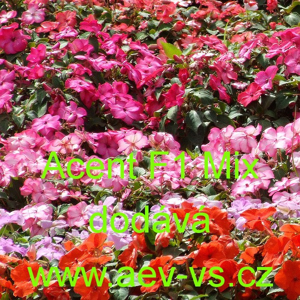 Popis: Netýkavka turecká, sultánská, ančička, sultánka nebo i pilná lízinka (Impatiens walleriana) Accent F1 Mix je asi 25 centimetrů vysoká směs hybridních jednoletých květin. Hodí se na záhon, do truhlíku, květináče, okrasného koryta a závěsných nádob. Semena se dodávají ve výběrové kvalitě Professional Seeds.