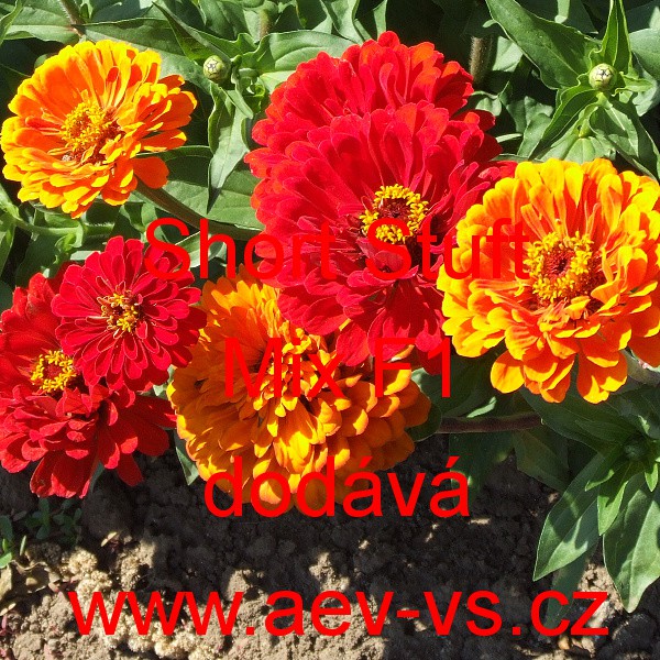 Ostálka sličná lepá, cínie (Zinnia elegans) Short Stuff F1 Mix je směs nízkých košatých jednoletých květin.