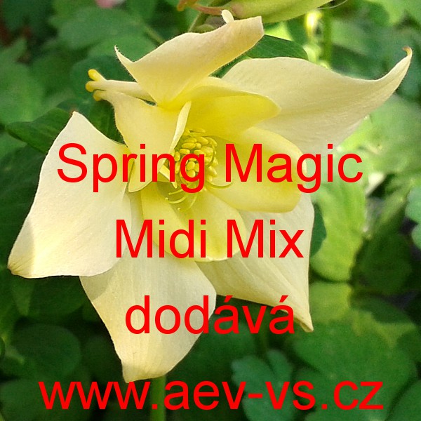 Orlíček modrý (Aquilegia caerulea) Spring Magic Midi Mix je velkokvětá směs středně vysokých vytrvalých květin.