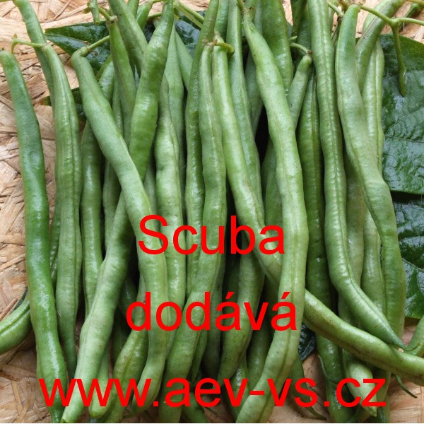 Popis: Fazol keříčkový (Phaseolus vulgaris var. nanus) Scuba je raný/poloraný bezvláknitý zelenoluský chorobám odolný keříčkový fazol. Vytváří asi 15 centimetrů dlouhé křehké šťavnaté masité lusky.