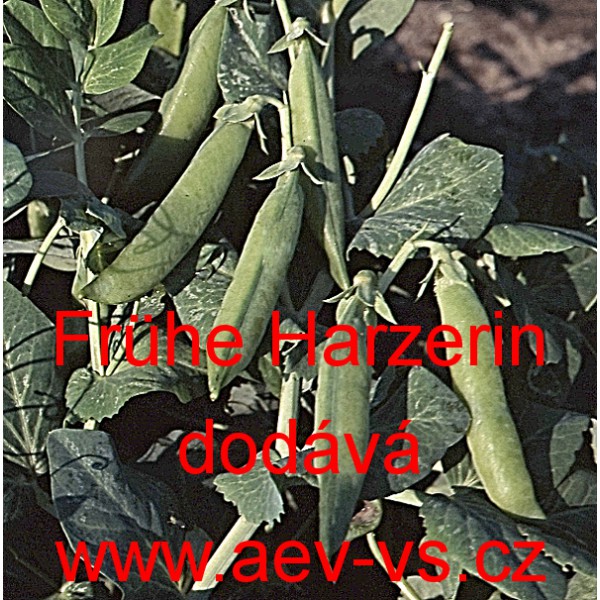 Hrách setý k vylupování (Pisum sativum L.) Frühe Harzerin je velmi raný asi 65 centimetrů vysoký zelenoluský hrách setý k vylupování.