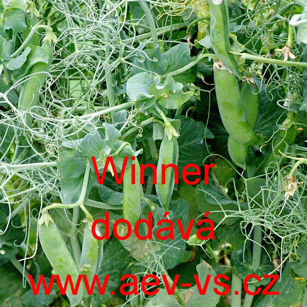 Popis: Hrách setý dřeňový (Pisum sativum L.) Winner je velmi raný asi 60 až 65 centimetrů vysoký výnosný zelenoluský dřeňový hrách setý. V lusku vytváří 7 až 8 semen.