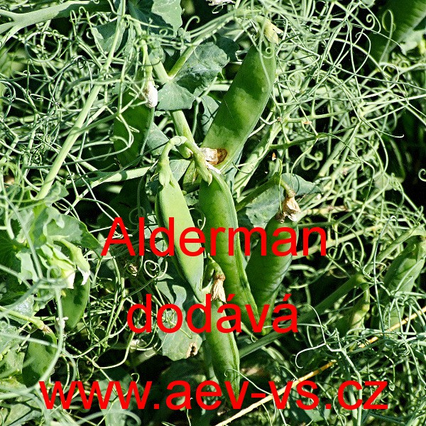 Popis: Hrách setý dřeňový (Pisum sativum L.) Alderman je pozdní asi 140-160 centimetrů vysoký zelenoluský dřeňový tyčkový hrách setý. Vytváří asi 10 až 12 centimetrů dlouhé lusky s asi 9 až 10 semeny.
