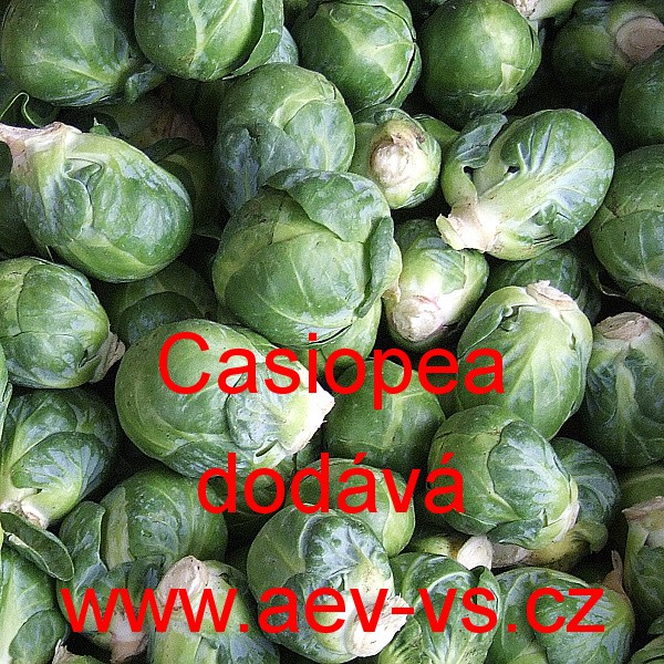 Popis: Kapusta růžičková (Brassica oleracea var. gemmifera) Casiopea je polopozdní asi 110 až 125 centimetrů vysoká růžičková kapusta vhodná i pro postupnou sklizeň. Odolává mrazům poléhání a vyvracení. Vytváří menší pevné tmavě zelené na stonku hustě nahloučené růžičky.