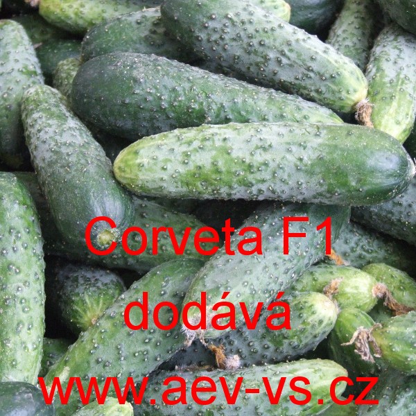 Popis: Okurka setá nakládačka (Cucumis sativus) Corveta F1 je raná geneticky nehořká "hrubá" hybridní okurka setá nakládačka. Poměr délky a šířky plodu je asi 3,6:1.
