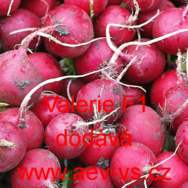 Ředkvička (Raphanus sativus var. sativus) Valerie F1 je raná kulatá sytě červená hybridní "celoroční" ředkvička.