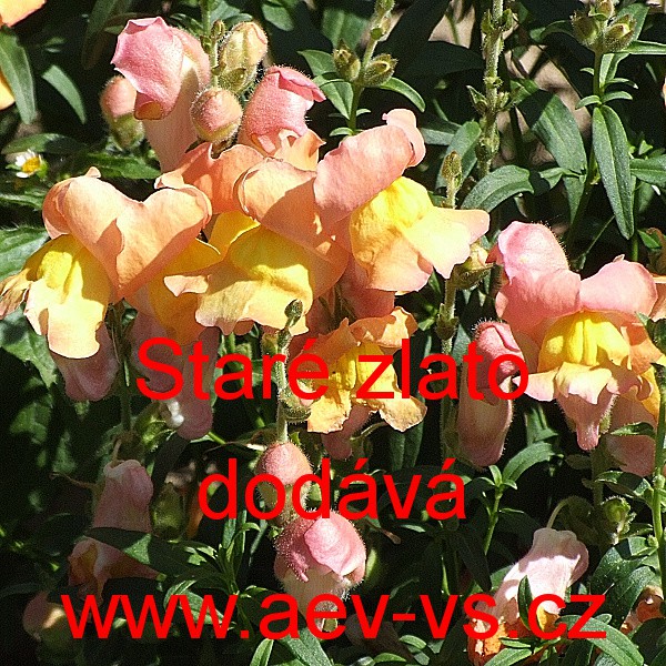 Hledík větší (Antirrhinum majus maximum) Staré zlato je vysoká žlutooranžová jednoletá květina.