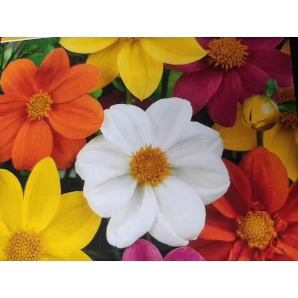 Jiřinka zahradní (Dahlia x hortensis) Mignon Mix je středně vysoká směs jednoduše kvetoucích jednoletých květin.