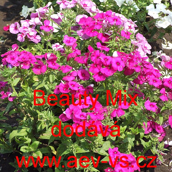 Popis: Plamenka Drummondova, flox letní (Phlox drummondii) Beauty Mix je asi 20 centimetrů vysoká směs jednoletých květin. Hodí se i do truhlíku, květináče a okrasného koryta.