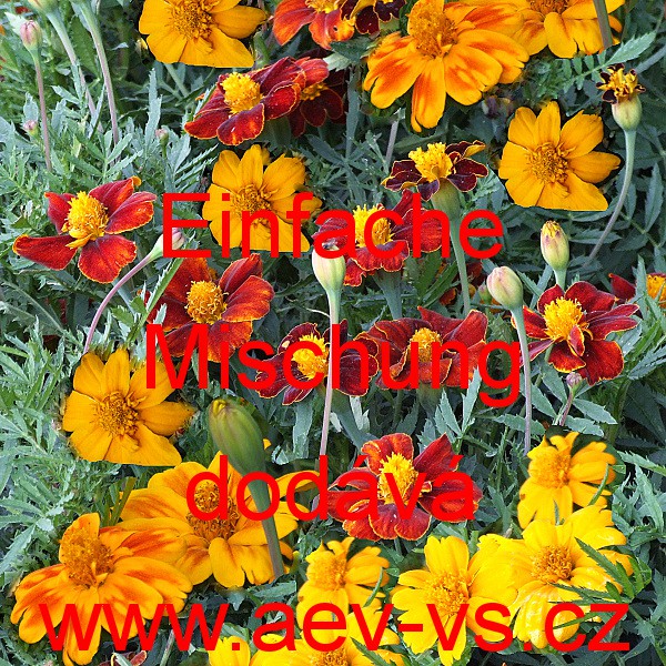 Aksamitník rozkladitý (Tagetes patula) Einfache Mischung je směs nízkých jednoduše kvetoucích jednoletých květin.
