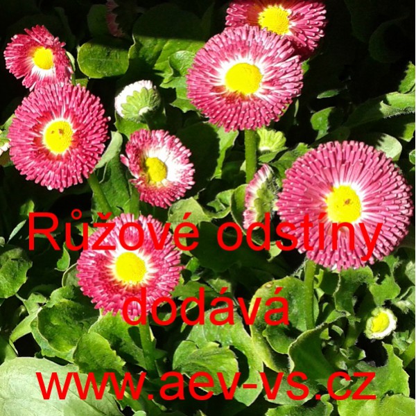 Sedmikráska obecná (Bellis perennis) monstrosa Růžové odstíny je nízká dvouletka.