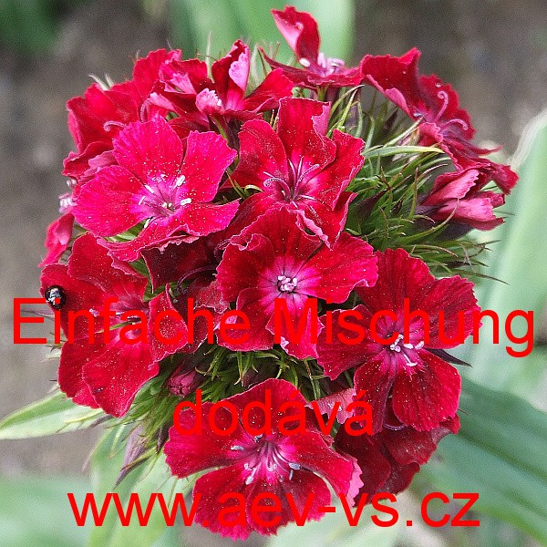 Popis: Hvozdík bradatý, vousatý (Dianthus barbatus) Einfache Mischung je asi 50 centimetrů vysoká směs jednoduše kvetoucích dvouletých květin. Dvouleté květiny vykvétají od druhého roku růstu. Některé z nich kvetou i několik let. Letní výsevy dvouletek nám umožňují využít záhony i pro jarní pěstování raných zelenin.