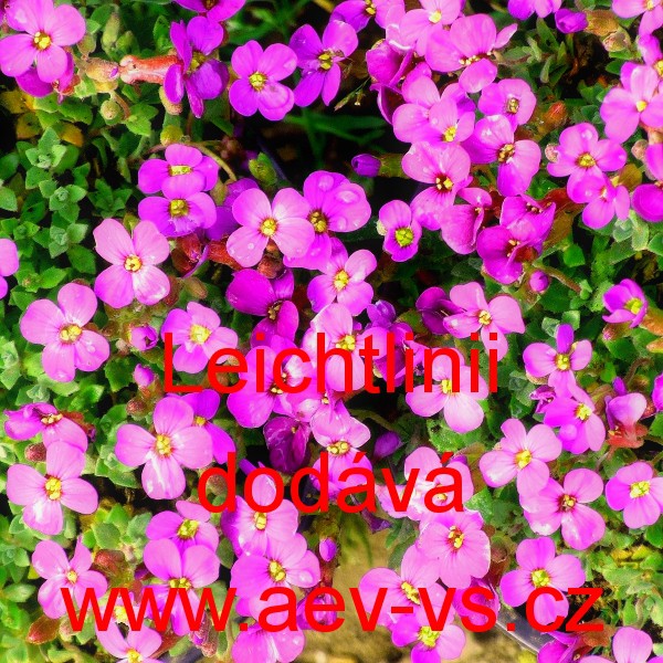 Tařička zkřížená (Aubrieta hybrida) Leichtlinii je jasně karmínově červená nízká vytrvalá květina.